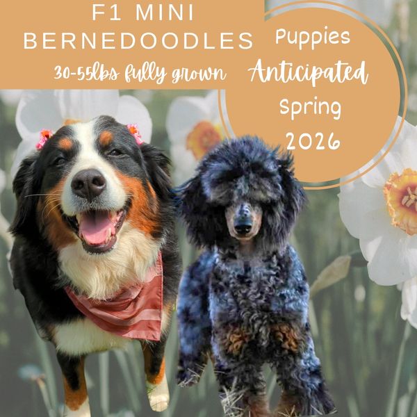 The size of your Bernedoodle will depend on various factors, including the size of the parent breeds (Bernese Mountain Dog and Poodle), as well as whether it's a mini, medium, or standard Bernedoodle. Here's a general description of each size category: